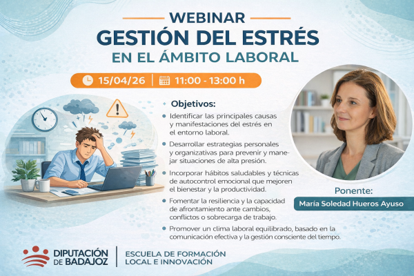 Se desarrollará este miércoles 15 de marzo de 2026 del 11 a 13 horas por la docente María Soledad Hueros Ayuso, licenciada en psicología por la Univer...